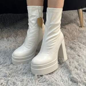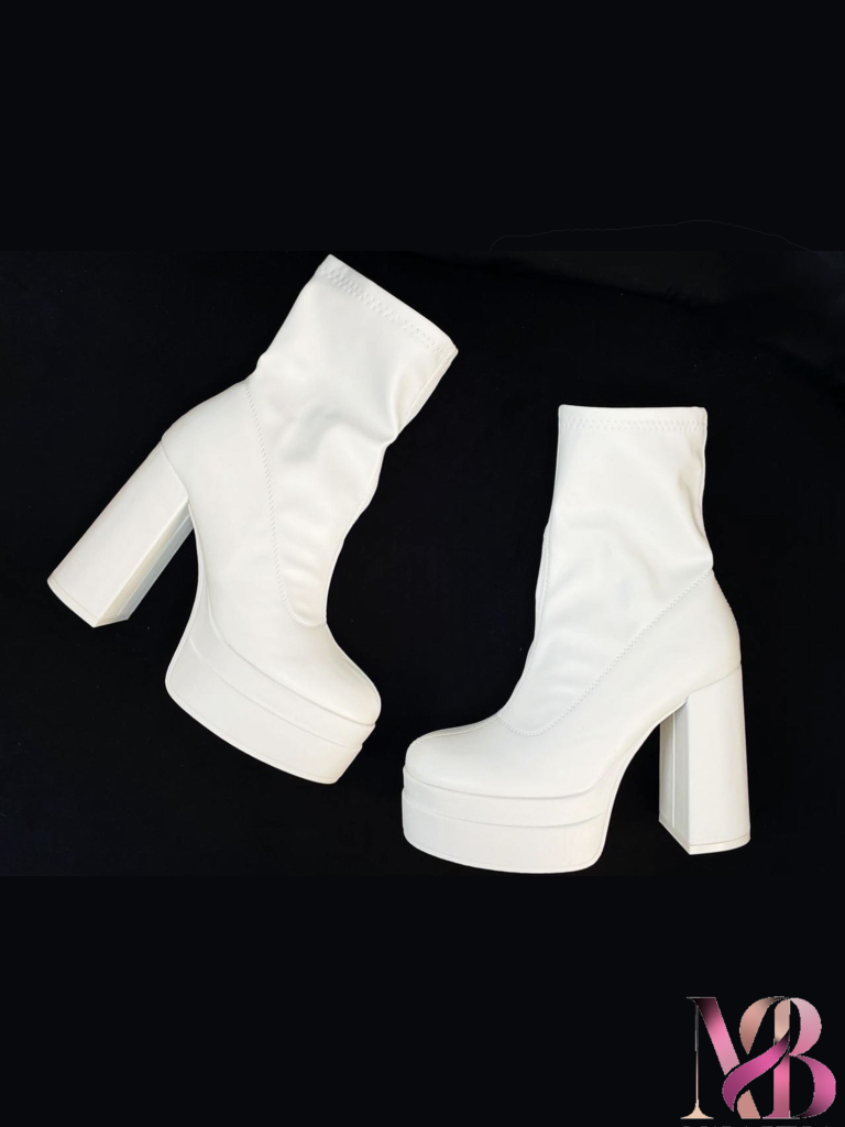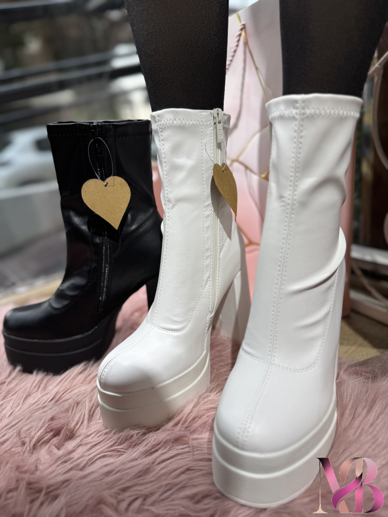 Las Botas Bratz color blanco son sinónimo de glamour contemporáneo. Su diseño vanguardista con plataforma XL y taco ancho redefine la silueta, estilizando tus pasos con una mezcla perfecta de elegancia y seguridad.