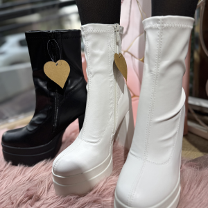 Confeccionadas en eco cuero de alta calidad, su textura suave y acabado impecable aportan una sensación de lujo minimalista. Su caña ajustada tipo calcetín abraza el tobillo con un calce perfecto, mientras el cierre lateral asegura comodidad y practicidad.