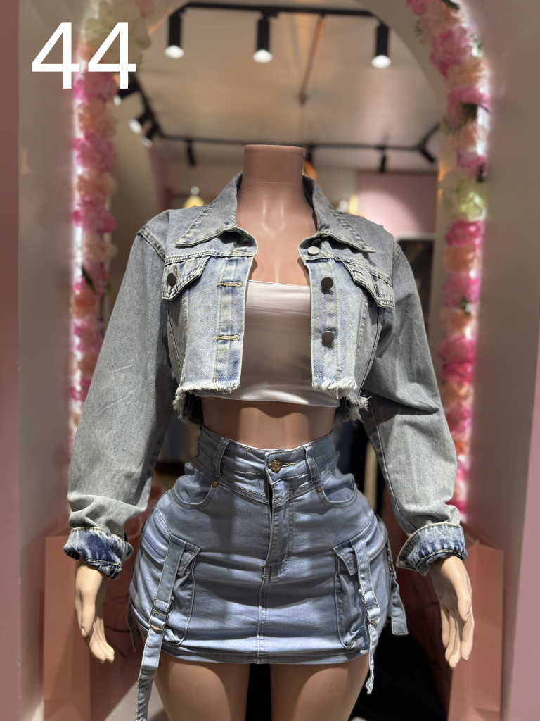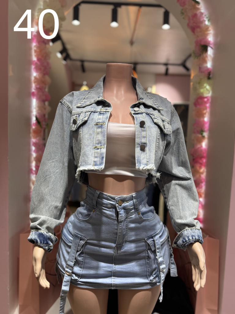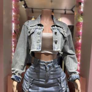 Diseñada en denim stretch de alta calidad, ofrece un ajuste que se adapta suavemente al cuerpo, realzando la silueta de manera natural. Los bolsillos laterales con detalles decorativos y las tiras ajustables añaden un toque urbano y versátil, mientras que su corte a la cintura estiliza y aporta una sensación de comodidad elegante.
