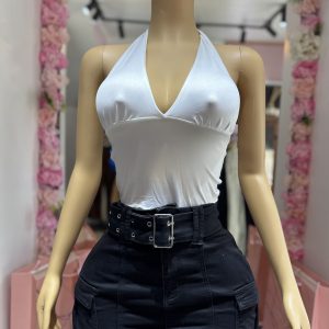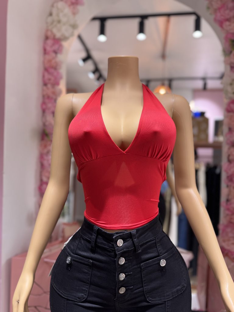 La polera halter “Essential Glow” es la fusión perfecta entre sensualidad y elegancia. Su diseño con escote en “V” profundo y espalda descubierta aporta un aire sofisticado y moderno, mientras su tejido suave y elástico se adapta delicadamente al cuerpo, realzando la figura con naturalidad.