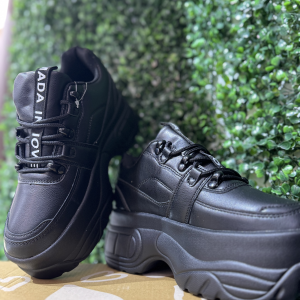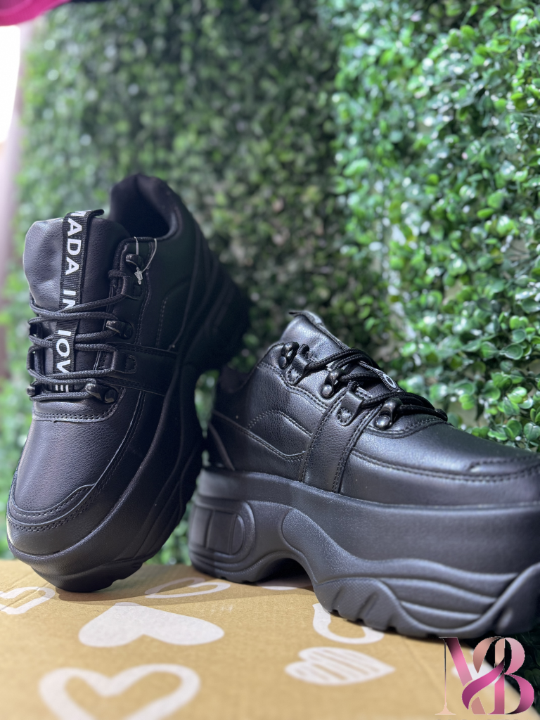 Diseñadas para mujeres que marcan tendencia, las zapatillas negras con plataforma son el equilibrio perfecto entre estilo y comodidad. Su silueta robusta y líneas modernas crean un look audaz y femenino, ideal para elevar tus outfits casuales o urbanos.